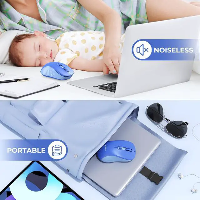 seenda Bluetooth Mouse, Black, Blue 2 Pack