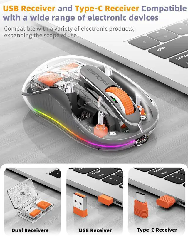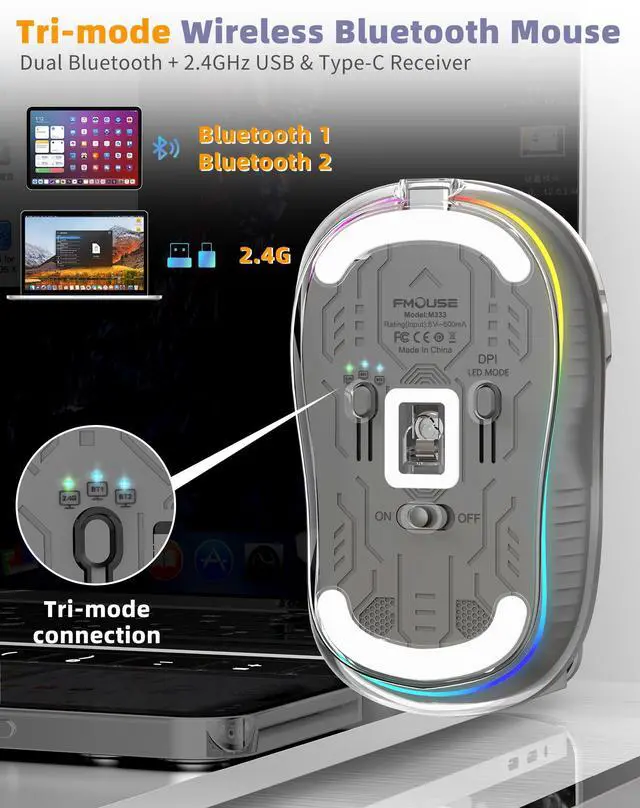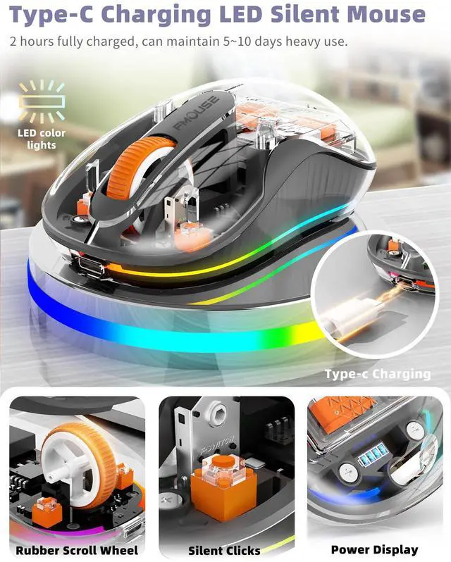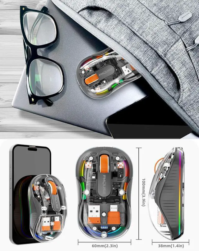 Technology Texture-Transparent Shell: The entire body of wireless Bluetooth mouse is covered with a fully transparent PC shell,giving you a wonderful feeling of future technology. powerful functions enhance your daily and working use.