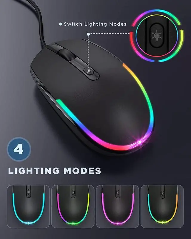 - RGB Lighting:The mouse features beautiful color-changing RGB lights around the edges. You can cycle through different modes or turn them completely off with the button on top. Lights are designed to be visible but not overly bright in well-lit rooms.