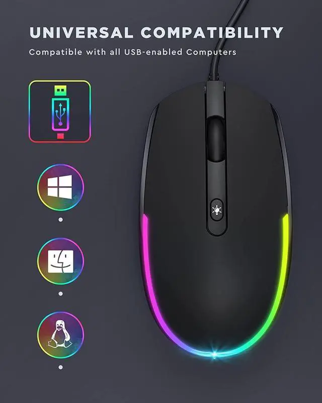 - Durability & Cord:The cord is 5 feet long for flexibility. To maximize lifespan, avoid excessive bending or pulling on the cable. If the mouse stops working after several months, it may be due to normal wear — please contact support for assistance.