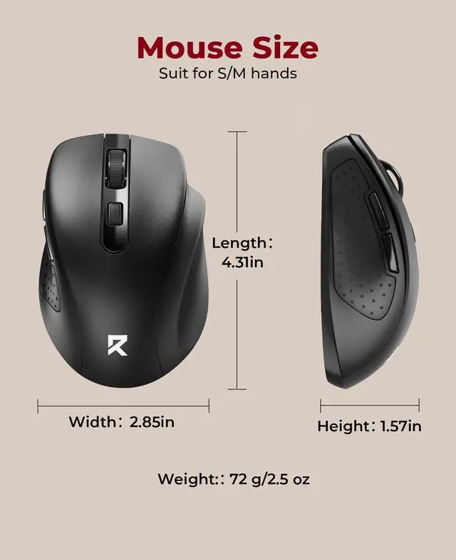 • Wide CompatibilityThis wireless mouse works with Windows, macOS, and Chrome, making it versatile for laptops, computers, and more. (Note: Side buttons are not compatible with macOS)