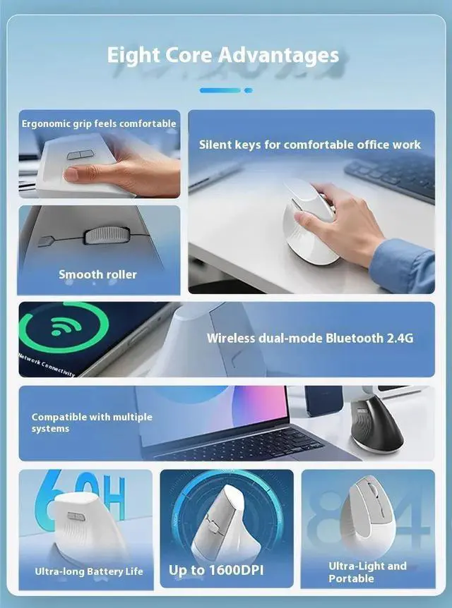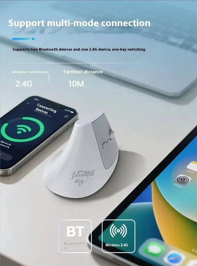 Ajazz I300 Wireless Bluetooth Vertical Mouse Silent Comforta