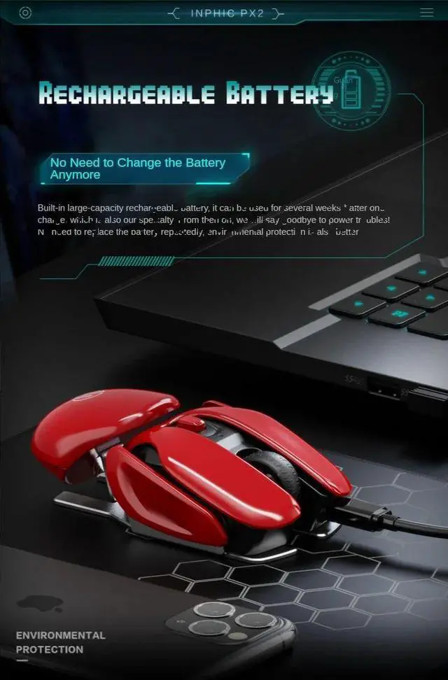 2024 New PX2 2.4G Rechargeable Mute 1600DPI Computer Mouse 6