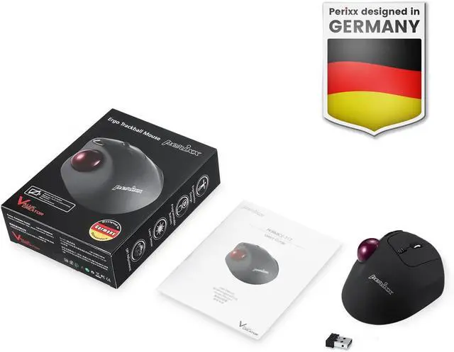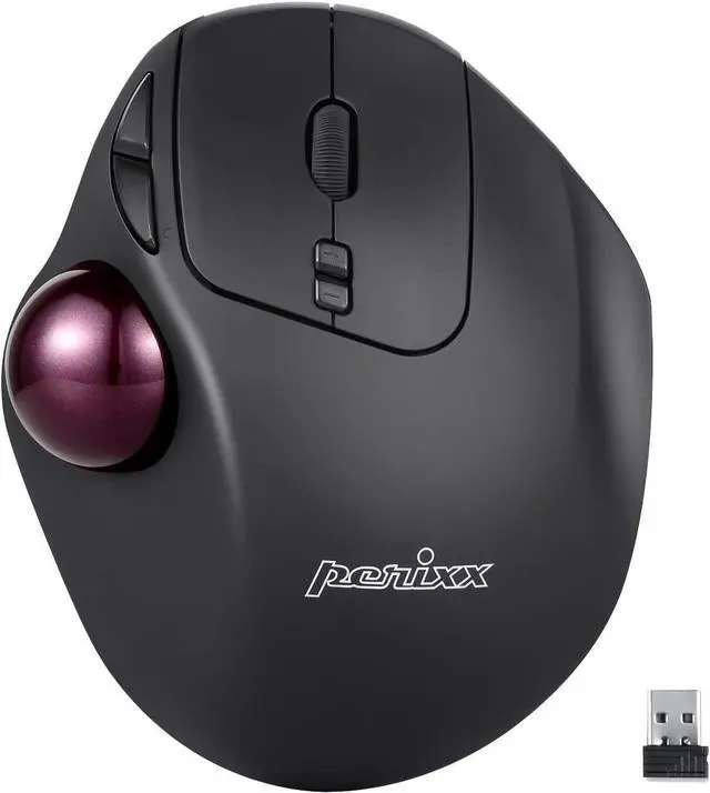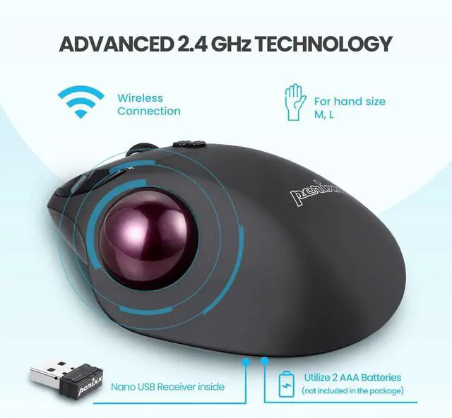 Wireless ergonomic trackball mouse with 2.4 GHz connection, 5 programmable buttons, and easy to switch the cursor speed with DPI switch buttons