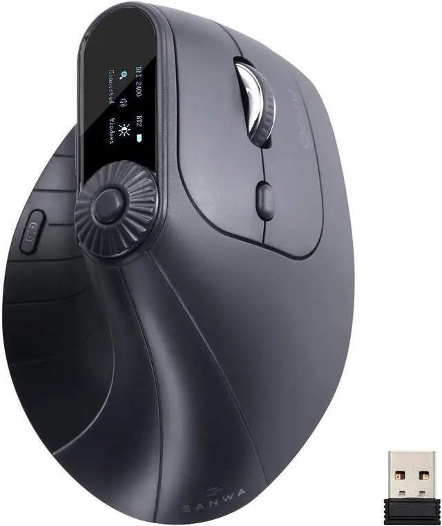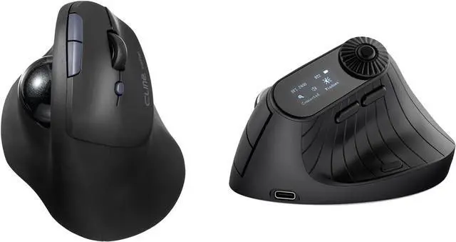 Vertical Mouse + Ergo Trackball Mouse - This bundle includes a 2-DP Ergo mouse with LED screen and a 190BK Bluetooth + 2.4G Wireless Trackball Mouse. Natural vertical angle, promotes a handshake grip to reduce wrist pain, finger numbness, and forearm tension.