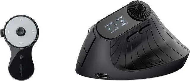 Vertical Mouse + Finger Ring Mouse - This bundle includes a 2-DP Ergo mouse with LED screen and a 156BK3 Bluetooth ring mouse. Natural vertical angle, promotes a handshake grip to reduce wrist pain, finger numbness, and forearm tension.
