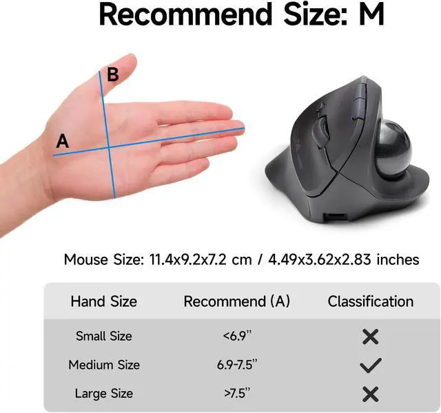 Vertical Ergonomic Design - Crafted with a technical 54° vertical angle, this ball mouse keeps your wrist and hands in a natural postures for comfortable grip. Help to relieve wrist strain, muscle stiffness & tension, and reduce fatigue during long hours of work. 34mm trackball, move the cursor accurately without shifting your hand.