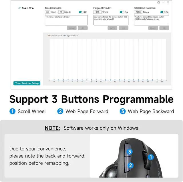 Customizable Buttons & Quick Web Navigation - You can download SANWA software to remap the buttons on this computer trackball to boost productivity. Features forward/backward navigation keysideal for browsing the web or managing documents.
