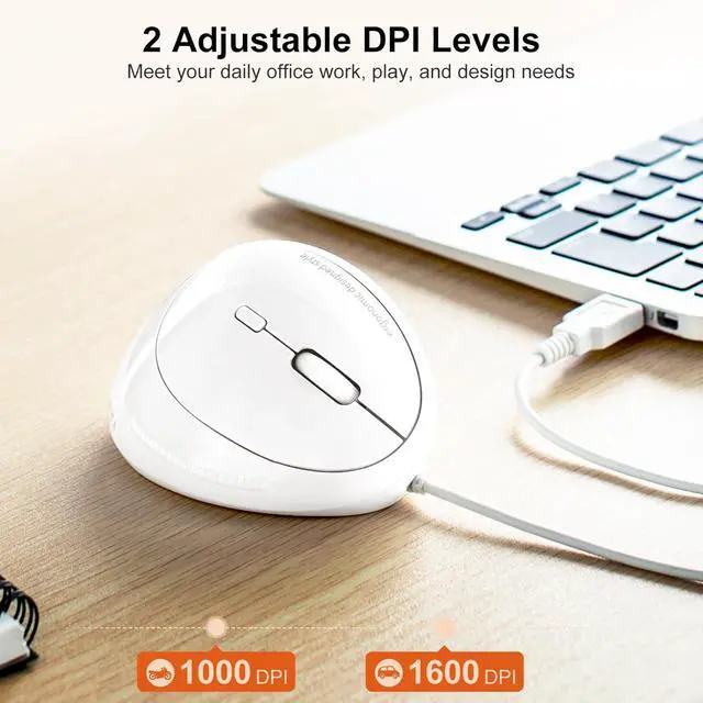 Smooth Navigation & Adjustable DPI This ergo mice can be switched between 1000/1600 DPI for optimal cursor control, supported by blue LED tracking for use on various surfaces. Includes convenient Back/Forward thumb buttons for easier web browsing (Note: buttons not supported on Mac).