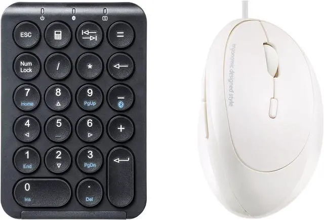 Ergo Mouse + Bluetooth Numpad Set This bundle includes a ERG16W whitewired vertical mouse and a Bluetooth numpaddesigned to improve posture, reduce wrist strain, and bring comfort to your daily workflow across office or home environments.