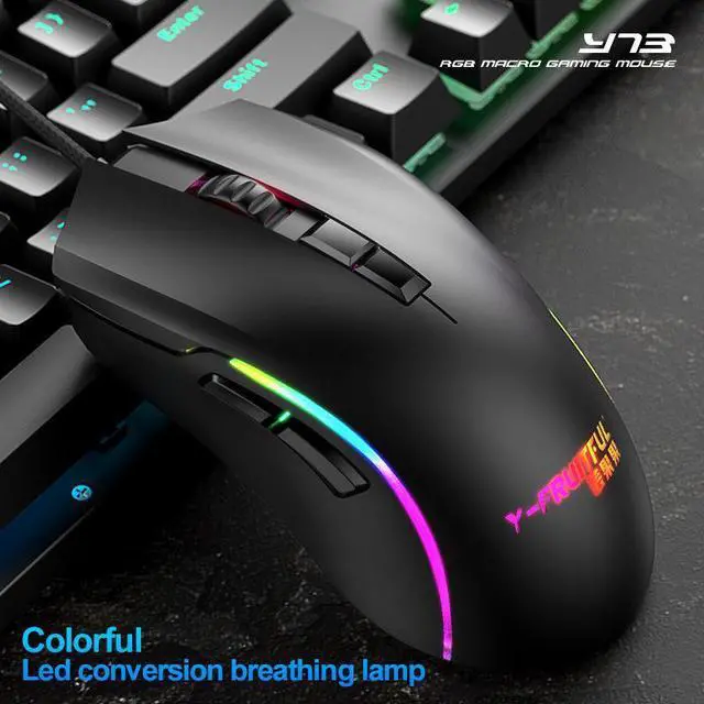 Dominate your games with the Y73 Wired Gaming Mouse. Featuring 7 programmable macro keys, 7200 DPI sensor, RGB lighting, and ergonomic design, it's perfect for FPS, MOBA, and professional gaming.
