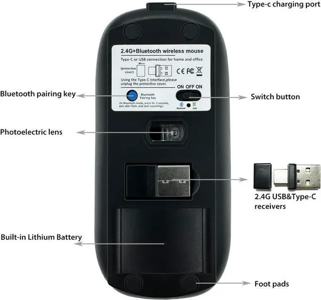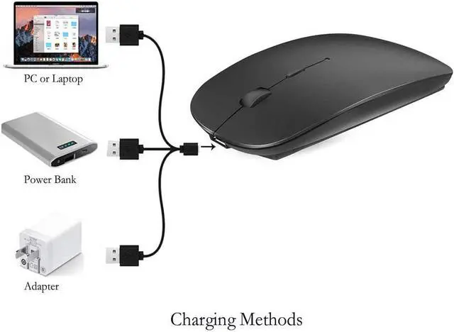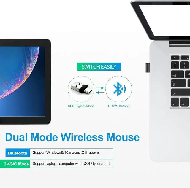 • Rechargeable Bluetooth 5.2/3.0/Type-C/USB-2.4G Mouse for MacBook/MacBook air/Pro/iPad Wireless Mouse for Laptop/Notebook/pc/iPad/Chromebook (Black)
