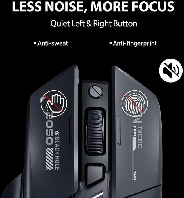 Adjust sensitivity (DPI: 800/1200/1600/2000/2400) fits both for work precision and gaming speed. The transparent RGB Breathing Light bar (toggle on/off at the bottom) gets rid of work dullness and adds vitality without breaking your budget.???????????????????? &???????? -???????????????? Rechargeable wireless mouse with matte textured side grips prevents slippage after sweaty hands or prolonged use avoids operating errors and reduces tight finger pressure ensure total control during marathon work sessions or intense gamingno more slips just steady precision???????????????????? &???????????????????????????????????????????????????????????????????? Quiet button design to reduce auditory fatigue eliminate key noise interference will not wake up family or children at late night overtime work best for libary home office dormitories cafes and other sensitive environments