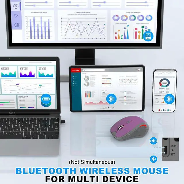 2025 Newly Upgraded Wireless Computer Mouse Wireless mouse switch seamlessly between Bluetooth 5.2 / 3.0 and 2.4G USB-C/USB-A modes to connect all your devices effortlessly. Reliable plug-and-play connection ensures stable performance up to 33 feet perfect for office and home use. Includes a USB-A/USB-C dual interface adapter for modern devices supporting instant lag-free operation on laptops desktops and tabletsForward & Back Buttons for Effortless NavigationOffice mouse lets you quickly move between web pages or documents with dedicated forward and back buttons making browsing smoother and boosting productivity. Perfect for multitasking and an efficient workflowMouse JigglerKeep your computer awake and secure with the undetectable driver-free jiggler.