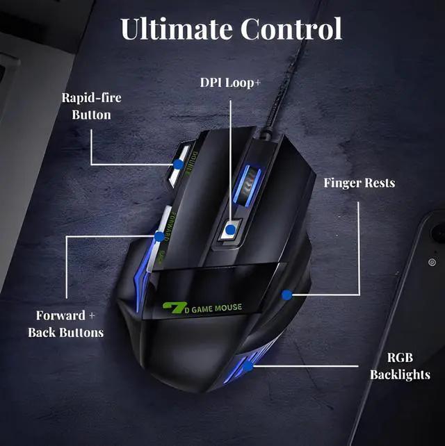 Accuracy-Crafted for DurabilityDesigned to withstand over 1 million clicks the Reaper Gaming Mouse is crafted from high-quality abrasion-resistant materials that maintain their form and texture. Each button is built for long-lasting resilience making it perfect for gamers looking for performance gear that goes the distance. Dynamic 10-Color LED BacklightEnjoy immersive gameplay with a vivid 10-color changing RGB backlight creating a great gaming atmosphere that complements your gaming setup and elevates your visual experience. 4 Adjustable DPI SettingsSwitch effortlessly among four DPI settings allowing precise control over cursor speed to match your gameplay needs. Adjust from ultra-sensitive DPI for precision targeting to lightning-fast for rapid movements adapting to both FPS accuracy and