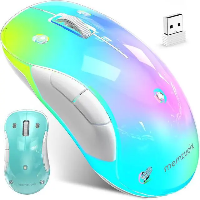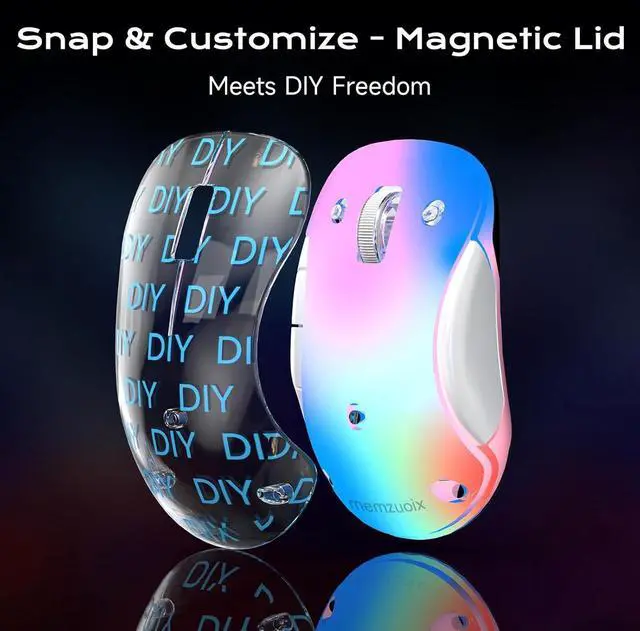 Stylish Transparent Wireless Mouse with 9-Color RGB & Magnetic Cover - Features auto-changing LED lights and detachable magnetic cover for DIY customization. Perfect for work play or as a unique gift. The wireless mouse delivers both aesthetics and functionality. Rechargeable & Energy-Saving - Built-in battery with USB-C charging (no battery replacements).