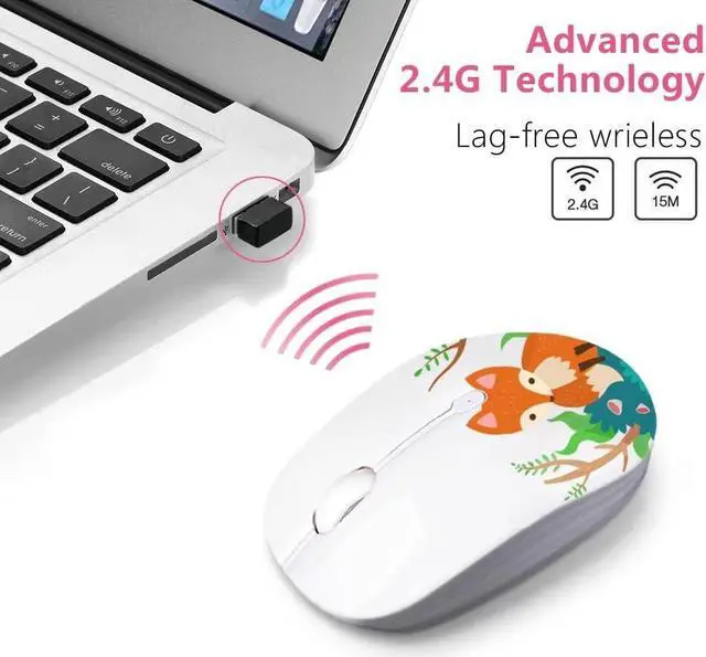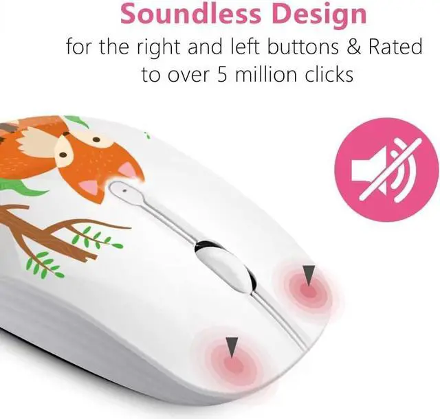 Wireless MouseAdvanced 2.4GH z wireless transmission provide stable and reliable connection. Working distance up to 10 meters. Plug and PlayNo extra software just find the USB receiver which is hidden in the battery compartment and plug into your PC USB slot. The cute mouse? will auto sleep after 8 minutes of inactivity for power saving it can be waken up by clicking any button. Gifts for women Share NaSUMTUO the simple and convenient lifestyle with your sweetie. Silent & Durable ClickSmooth Navigation with Less Noise Mouse Click. Special soundless design for the right and left buttons keep you focused and never disturb others.