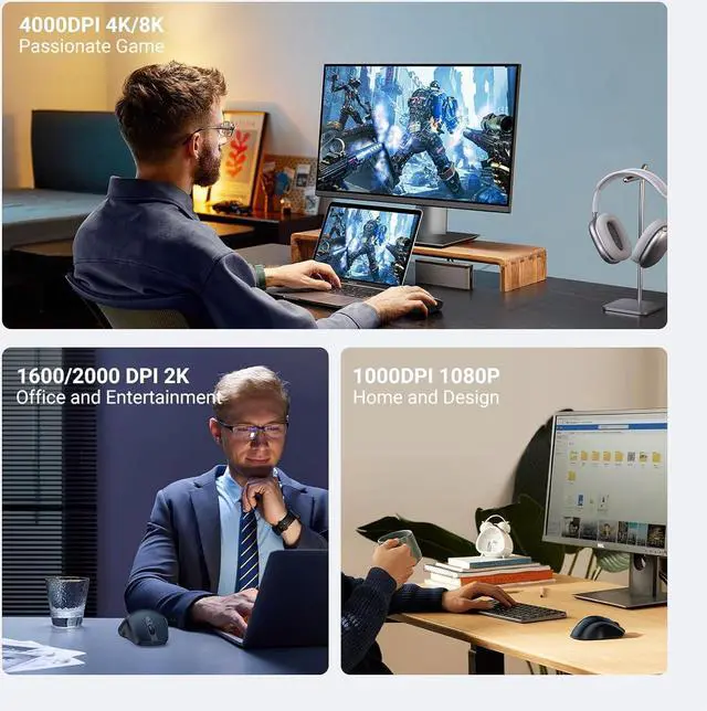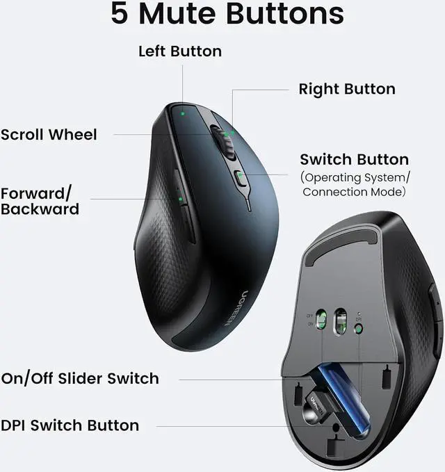 [Dual Mode] UGREEN Wireless Bluetooth Mouse offers two connection modes: Bluetooth 5.0 and wireless 2.4G; It supports seamless switching between the two modes with a simple button press eliminating the need for repetitive connections. For added convenience it features automatic pairing pop-up support on WIN10 and above[Full Size Ergonomic Design] This wireless mouse is designed to fit the natural curve of the right hand catering specifically to right-handed users; Featuring a larger design that fits perfectly in the palm of your hand you'll have a more pleasant working experience[Accurate Sensor] The UGREEN Bluetooth mouse has an excellent optical sensor and four adjustable DPI levels (1000/1600/2000/4000); Its accurate positioning enables smooth and precise operation making it suitable for various desktop environments[Quieter Click] It is an ideal companion for electronic gadgets in the workplace conference room coffee shop library or home since our Bluetooth mouse for laptops is made with a quiet click that makes less noise allowing you to use it without being concerned about bothering others[Broad Compatibility] This wireless mouse supports both Bluetooth 5.0 and 2.4GH z receiver connectivity options; It is compatible with a wide range of operating systems including Windows (7/ 8.1 /10/11) macOS ( 10.15 and above) iOS ( 13.4 and above) Android ( 5.0 and above) ChromeOS and Linux