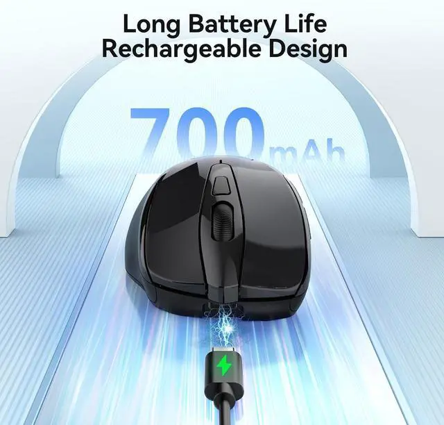 Rechargeable Mouse: Eliminate the hassle of frequent battery replacements with the computer mouse that offers a rechargeable feature. Up to 90 days of use on a single 1.5 to 2-hour charge (varies by usage). Ideal for anyone in search of a rechargeable wireless mouse. (A charging cable is included. )