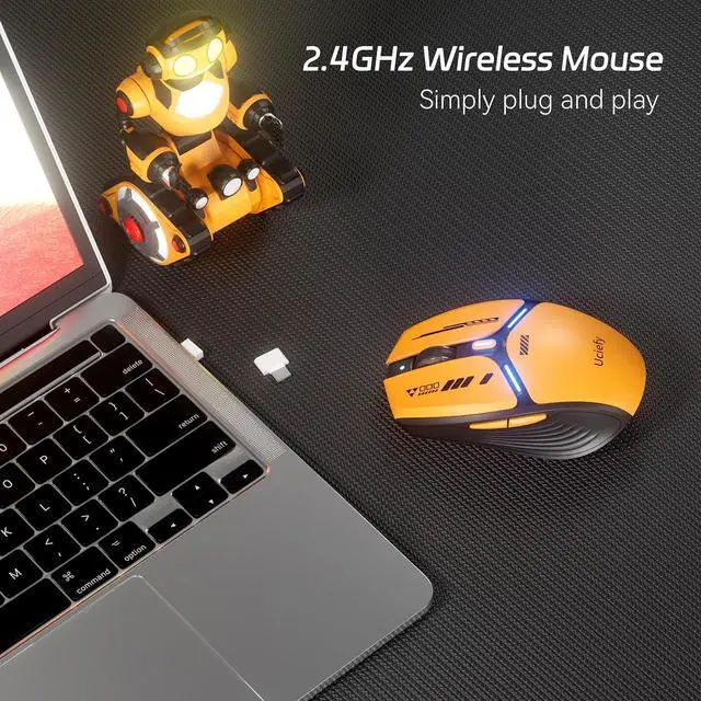 MECHA-STYLE DESIGN: Classical color scheme, cool LED light and disassembly parts (magnetic case and nano receiver) make it a cool looking mecha-style wireless mouse. Take apart the mouse cover and take the USB receiver out, it' s like dismantling the mecha parts. Enjoy the technology sense with this optical mouse.