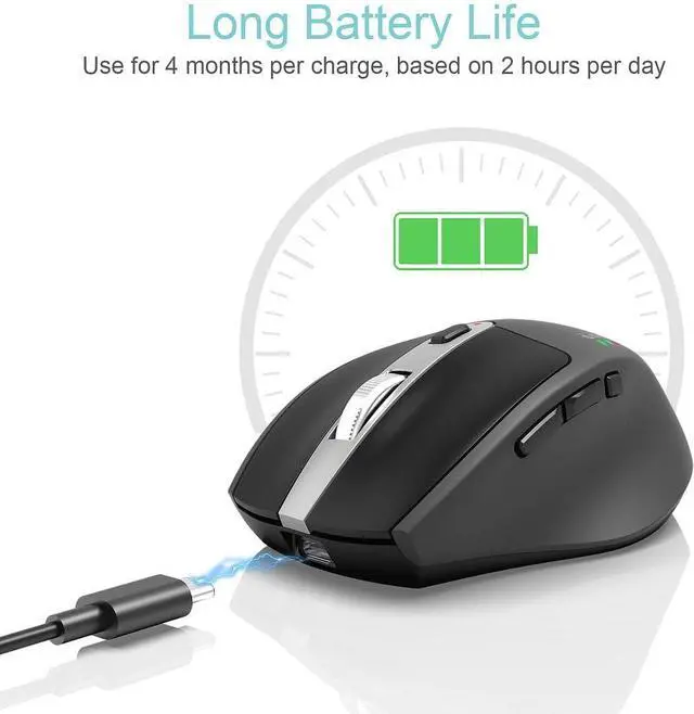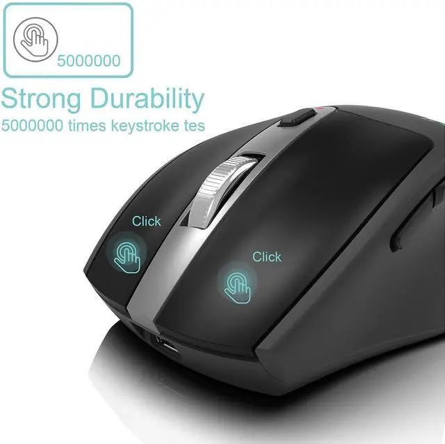 7 Buttons Mouse for more Productive: Besides the right button, left button and the wheel, the mouse has a DPI button to switch the cursor DPI between 800 / 1200 / 1600 / 2000 / 2400 DPI. The mouse has 2 side-buttons for page backward and forward, and 1 button to switch between devices.