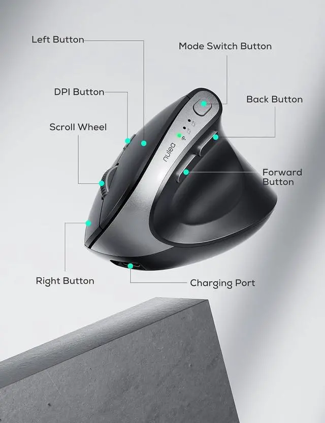 Endless Productivity: Enhance work and gaming with the Nulea MD280 carpal tunnel mouse. Its ergonomic design, featuring a dedicated pinky rest, minimizes wrist fatigue and guards against repetitive stress injuries, ideal for carpal tunnel relief. Perfect for long work sessions, ensuring pain-free, efficient productivity.