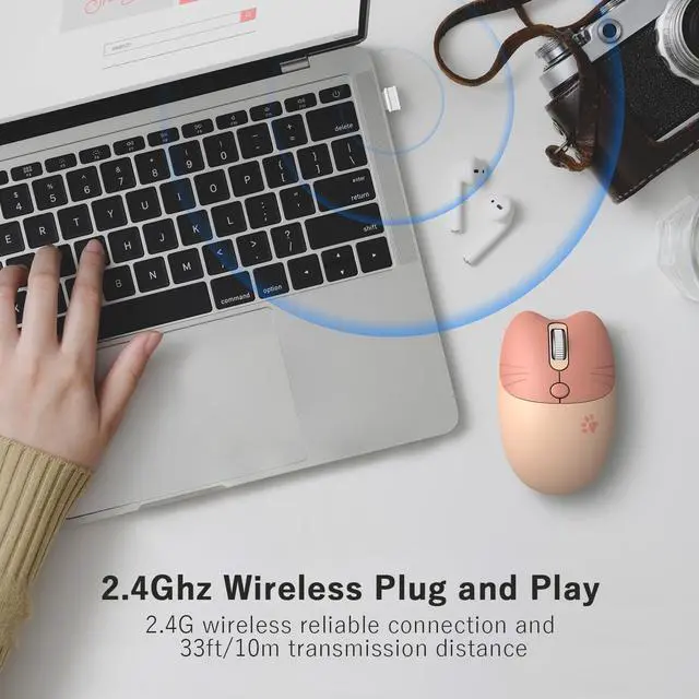 Cute Cat Ears Design Ear streamline design, the wireless mouse is comfortable to grip and fits perfectly in your hands, providing max comfort and support your hand.