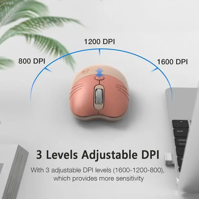 3 Adjustable DPI3 DPI switch, 800/1200/1600, easy to change the speed of the wireless mouse freely to meet different needs, either for daily work or gaming. The factory default is 1200DPI, press the middle button to switch DPI you need.