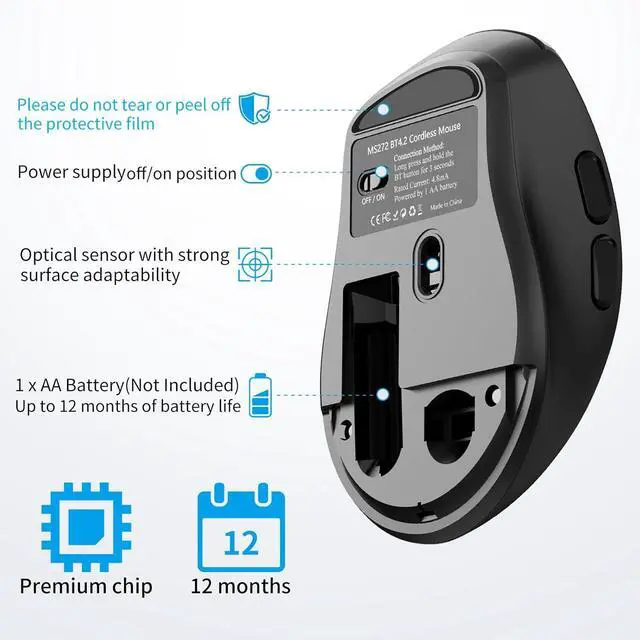 Wide Compatibility with Major Operating SystemsM272 Bluetooth 4.2 mouse is suitable for most devices with Bluetooth function, such as laptop, Chromebook, tablet, smartphone, etc. This mouse is compatible with Windows, Linux, Chrome OS, Android