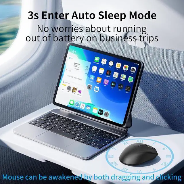 Energy-Efficient with Smart Sleep ModesThis mouse is powered by a single AA battery (Not included). Super energy-efficient design and energy-saving sleep modes. After 3 seconds of inactivity, it enters a low-power sleep mode, and after 30 minutes, it switches to a deep sleep mode. These features help extend battery life, reducing the need for frequent replacements.