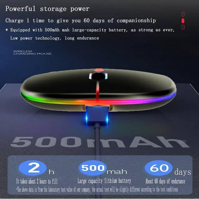 Dual Mode Wireless Bluetooth Mouse: 7 different color changes randomly while in use, offering soothing lighting, creating cool and fancy atmosphere for work and play.