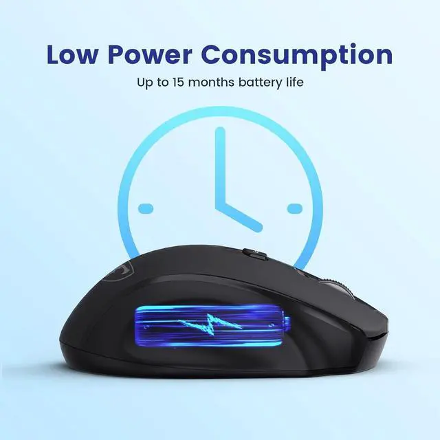1 AA Battery, 2X LongerOnly 1 AA battery lasts up to 18 months. It enters sleep mode after you leave for 8 minutes, only click any button to recall. D-09 wireless computer mouse saves time and money by practically reducing the need to change batteries.