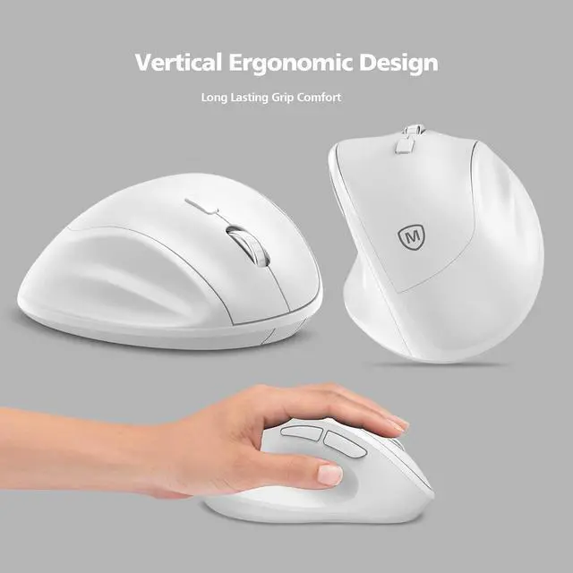 Ergonomic Design: Ambidextrous vertical mouse with silent clicks and long battery life