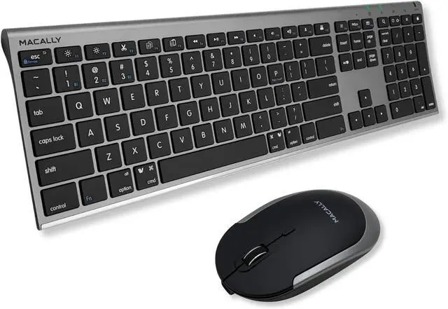Macally Premium Bluetooth Keyboard and Mouse for Mac | Compatible Wireless Apple Keyboard and Mouse Combo (110 Keys Multi-Device Rechargeable) for MacBook Pro/Air and iMac - Space Gray