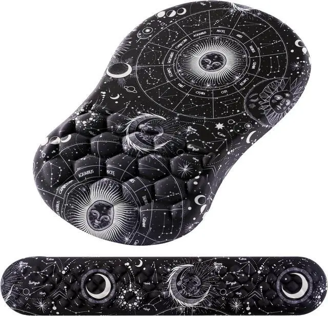 mouse pad wrist supportThe surface of our keyboard and mouse pad is made of silky lycra fabric, offering a smooth and skin-friendly experience. Enjoy precise mouse control and easy cleaning with the ability to wash away liquid stains. The high-definition bright print pattern adds a touch of elegance to your workspace.