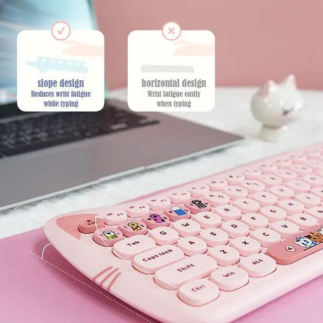 Designed for Comfortable TypingStylish and thin keys that fit the arc of your fingers, making typing more comfortable. Slope design, the wrist is not easy to get tired when typing.