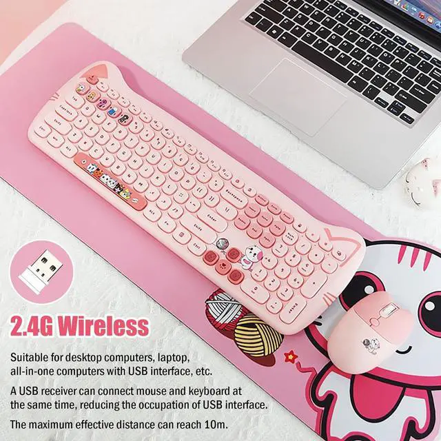 2.4G wireless connectionUsing 2.4G wireless transmission technology, the maximum distance can be up to 10m. The wireless connection eliminates the clutter caused by data cables and is recommended for those who prefer a clean desk. 1 USB receiver connects the mouse and keyboard at the same time, reducing the occupancy of the USB interface.