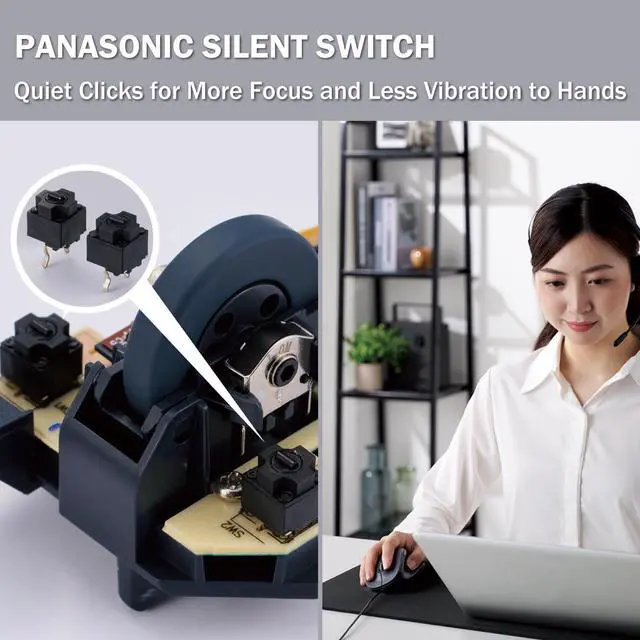 SILENT CLICK SWITCH - A Silent switch does not make a ticking sound. You can use mouse during the meeting, early in the morning and night work, even when you work at home, without worrying about the sounds around you.