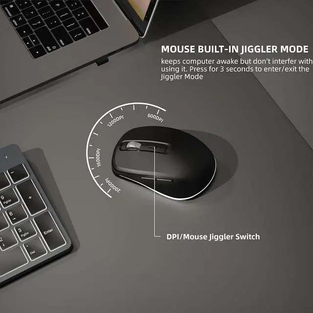 Mouse With Built In JigglerHold DPI button for 3 seconds to enter jiggler mode, the mouse pointer will automatically move to prevent the computer screen from locking when you step away, eliminating the need for constant logins. Moreover, mouse has forward and backward buttons and 4 levels of tracking speed, which can fully meet your various usage requirements