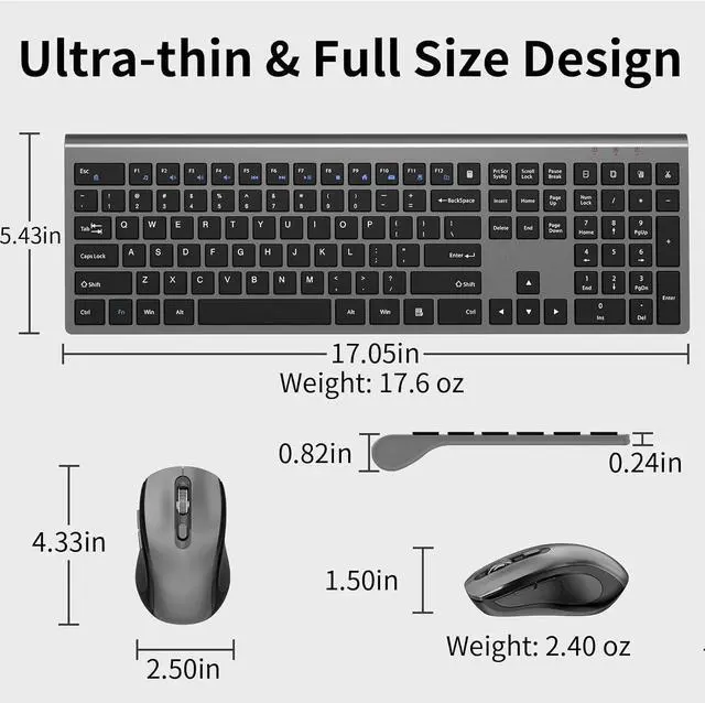Ultra-thin & Efficient Keys The wireless, ultra-thin keyboard has an adjustable tilt angle to reduce fatigue, and its soft-touch keys make typing smoother, The full size wireless keyboard offers 18 shortcut keys and a numeric keypad. (The hot-keys not fully compatible with Mac System)
