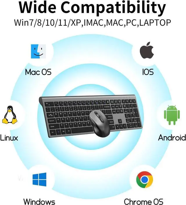 Universal CompatibilityWell compatible with Windows 7/8/10/11/XP/Vista, Linux, Chrome OS and Android operating systems(Keyboard and mouse can also be used for Mac OS, but multimedia hotkeys may not be applicable). Fits for desktop, laptop, PC, Macbook, Chromebook act. (Pls