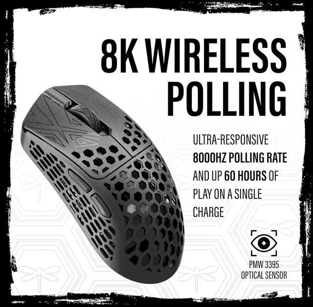 Lightning-Fast 8K Wireless Polling: Experience ultra-responsive gameplay with an 8000Hz polling rate and integrated LCD display that keeps you updated on stats like polling rate, DPI, and battery life.