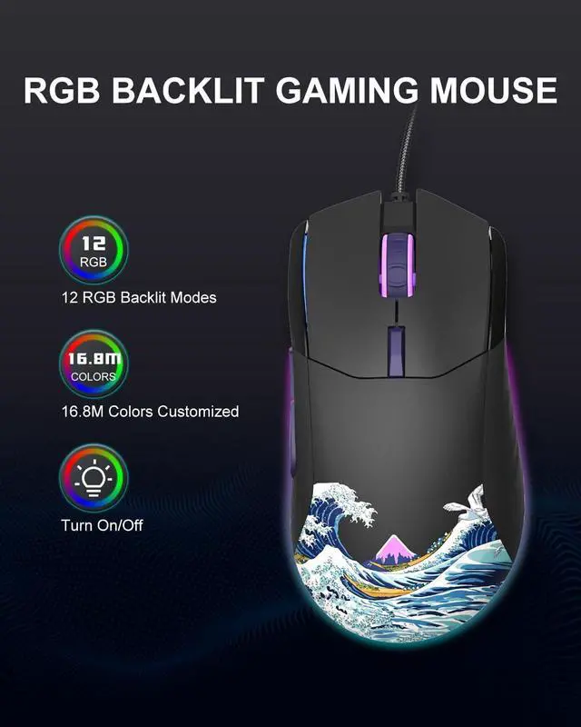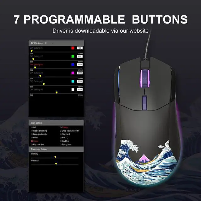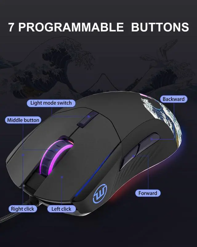 7 Programmable Mouse Buttons Great wave off kanagawa wired gaming mouse, designed for computer games. 7 customizable programmable mouse buttons, allow you assign custom commands to the buttons according to your specific needs.