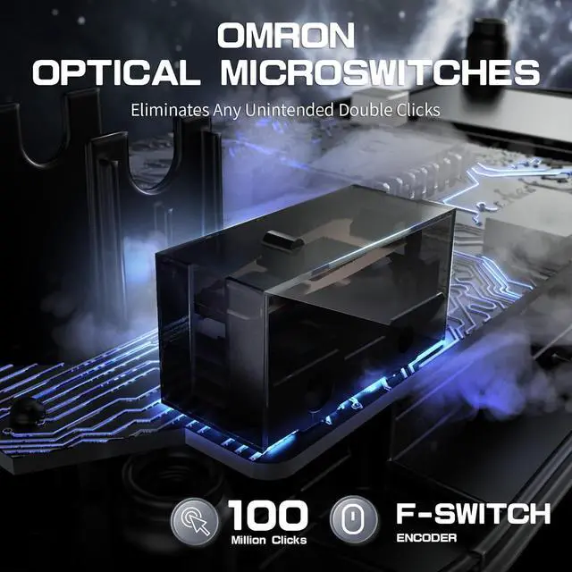 Zero-Debounce Optical Switches & Tactile EncoderLatest Flagship optical microswitches deliver 100M-click lifespan (3x longer than mechanical switches) with 0.2 ms actuation, eliminating double-click failures. Paired with the F-Switch dust-resistant encoder, which provides precise stepping. Enjoy 30% smoother weapon cycling in PUBG and <0.01% misclick rates for WoW skill rotations or League of Legends combos.