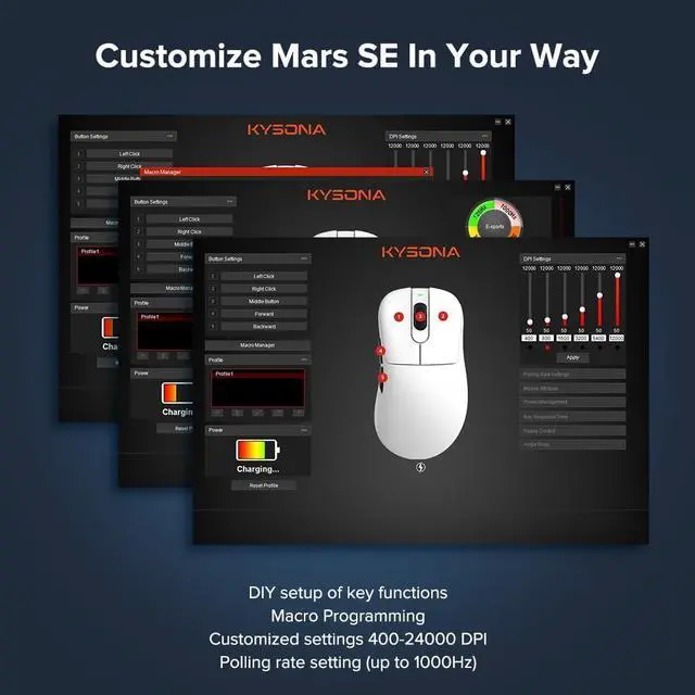 & The Mars SE gaming mouse wireless weighs only 59g, offering an ultra-lightweight feel for hours of uninterrupted gaming. Its ergonomic design ( 123.1 x 66.3 x 42.8 mm) fits comfortably in your hand, preventing fatigue even during long gaming sessions
