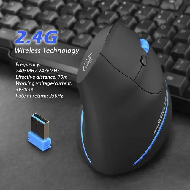 Kindly Note: The USB receiver is inserted in the battery compartment of the mouse; 1 AA battery required but not included. No lights on both sides of the mouse, just blue decorative strips. Please peel off the transparent protective film on the bottom of the mouse before use. This is a right-handed mouse.