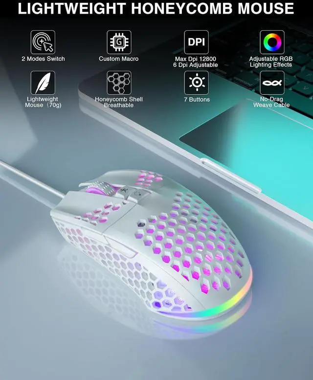 3 Sided Honeycomb Shell design: SM900 Wired mouse more breathable, more sweat-absorbent and more comfortable!!! The gaming mouse is made of high quality ABS material and designed with ergonomic hollow perforated housing, Ergonomic Design reduce the weight and make the mouse more flexible and easier to be used for a long time without fatigue, and also enhance the heat dissipation features, very comfortable to use