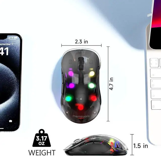 • Stylish Transparent Wireless Mouse with 9-Color RGB & Magnetic Cover - Features auto-changing LED lights and detachable magnetic cover for DIY customization. Perfect for work, play, or as a unique gift. The wireless mouse delivers both aesthetics and functionality.