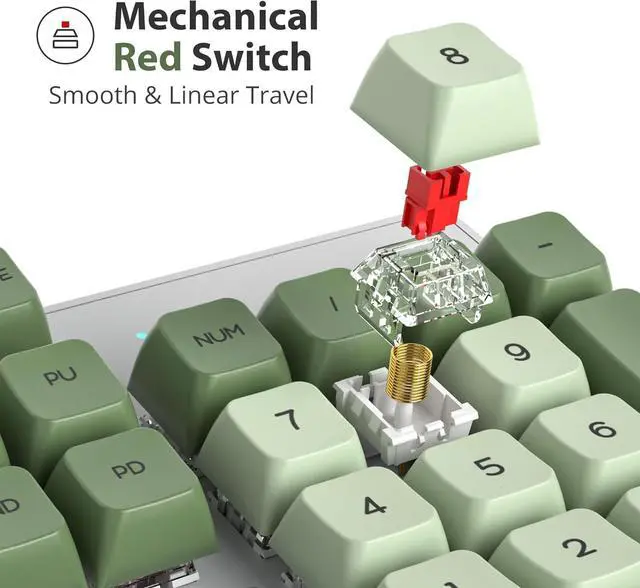 Mechanical Red Switch: The red switch characterized for being linear and smoother, slight key sound with minimal resistance, but fast action without a tactile feel; easy to tap the keyboard