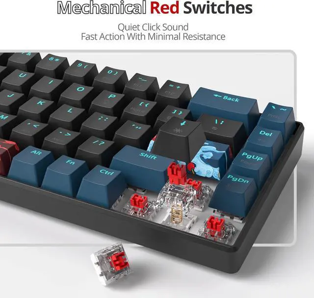 Red switch & Wide CompatibilityRed Switches are Quiet click sound, fast action with small resistance without a tactile bump feel, they are easier on your hands if youre typing for long periods of time; This USB wired mechanical gaming keyboard compatible with Windows / Mac